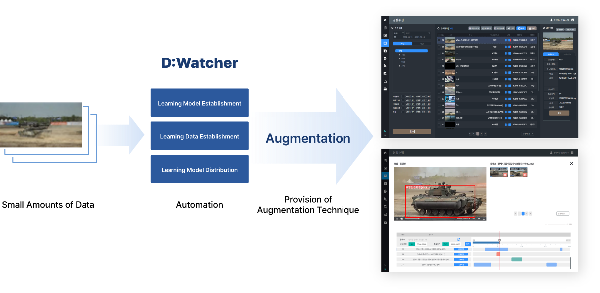 The Korean Army established Military ImageNet (2020–2021) as a video database and is constructing the Intelligence Center (2023–2025) as a database platform to develop AI core capabilities. As a part of its efforts, the Army used Konan Watcher to automate a series of procedures, including learning data establishment, learning model establishment, and learning model distribution. In addition, as there are limitations to AI learning due to the constraints on securing learning data in areas of national defense, Konan Watcher provided effective augmentation techniques for small amounts of data that had been secured.
